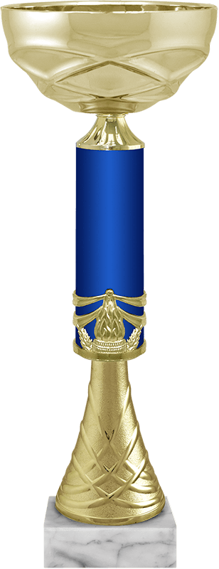 Кубок универсальный. Основной цвет золото, дополнительный синий. Основание натуральный камень белого цвета. Может дополнительно комплектоваться табличкой, заказывается отдельно