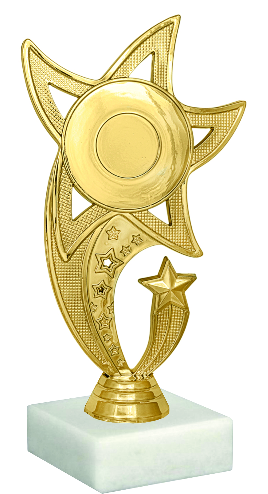 Награда звезда. Высота 19 см. Материал пластик, цвет золото, основание мрамор. Может дополнительно комплектоваться табличкой и вкладышем (если предусмотрено). Персонализация заказывается отдельно.
